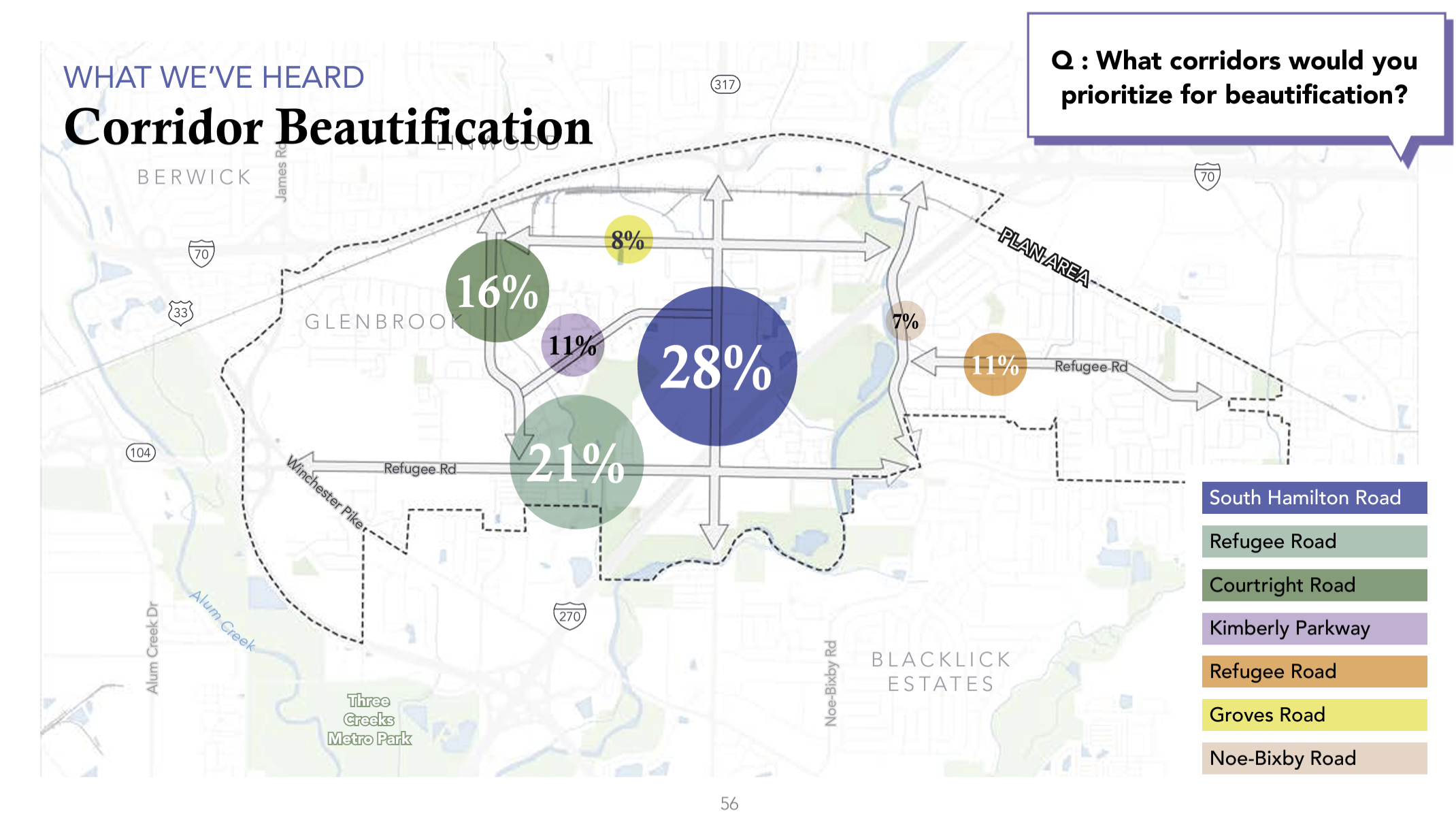 On Monday, June 24, 2024, the Eastland community came together at Barnett Community Center to discuss community well-being, identity, and pride. We had 46 participants join who heard a presentation from the Eastland Planning Team and Mid-Ohio Food Collective, and also participated in engagement activities. The information below is a high-level summary of what was discussed during the workshop.
