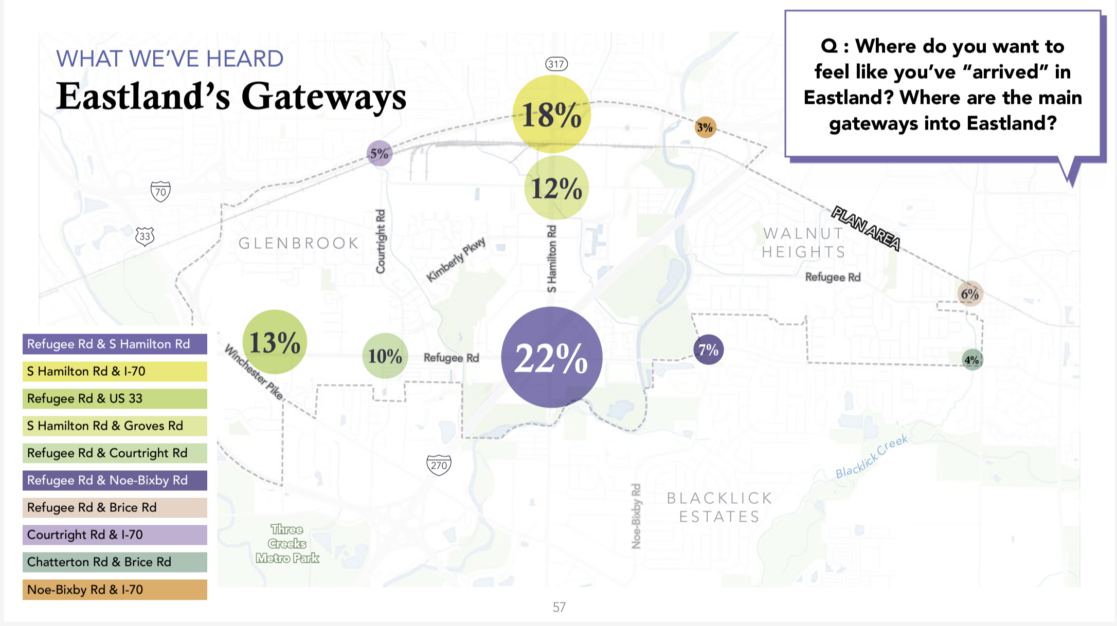 Results from the community survey on what gateways make people feel like they’ve entered Eastland