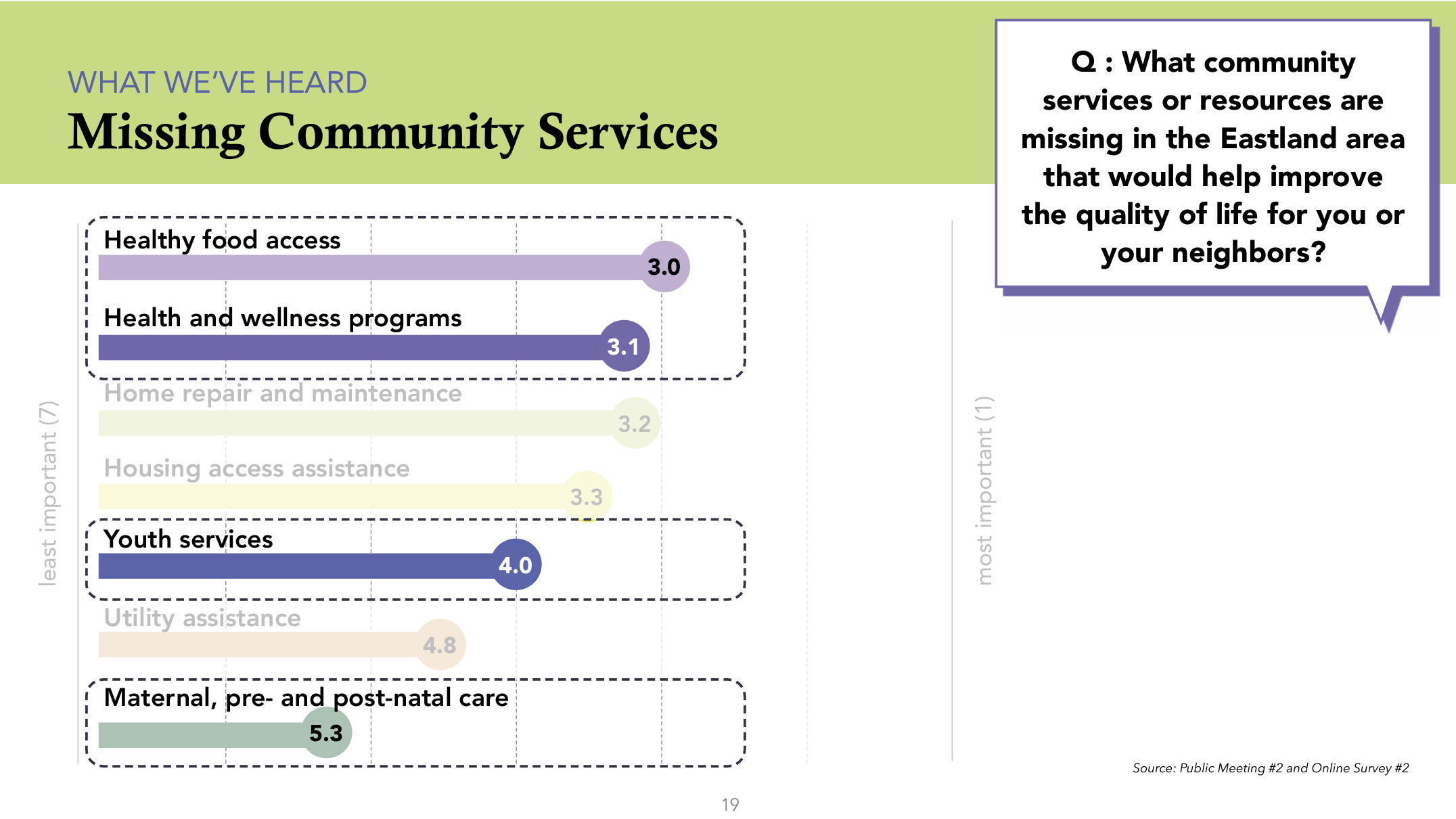 With hopes to create a space that can provide wraparound services to the Eastland community, MOFC asked the community what additional services should be added to further meet the needs of the community.