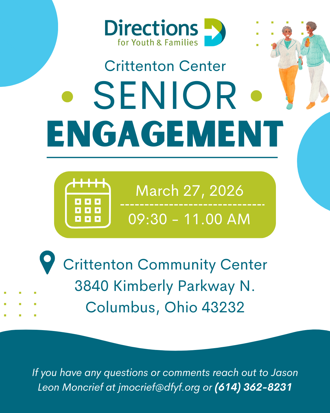 Directions for Youth & Families Crittenton Community Center has launched a senior program and activities to provide a space for Eastland seniors to learn about and access needed services, build connections with other seniors, foster intergenerational connections, and combat the senior loneliness epidemic. Join us tor learn, connect, build community, and have fun!