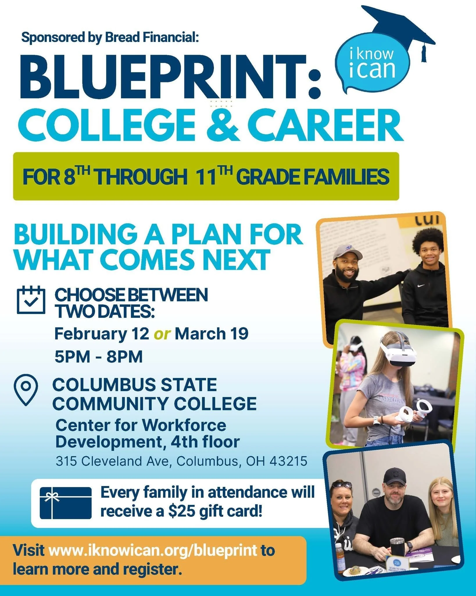 I Know l Can's 2026 Blueprint: College & Career events support families of grades 8-11 students as they plan for the future. At the event, families will enjoy: