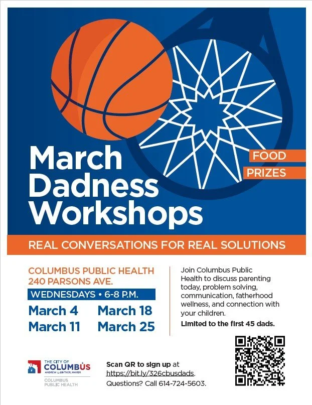 Join us at Columbus Public Health for a series of real conversations to create real solutions for Dads. Workshop dates: March 4, 11, 28, and 25.