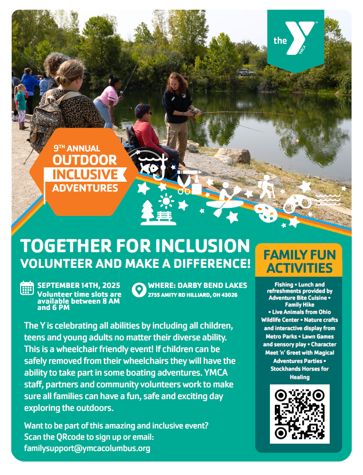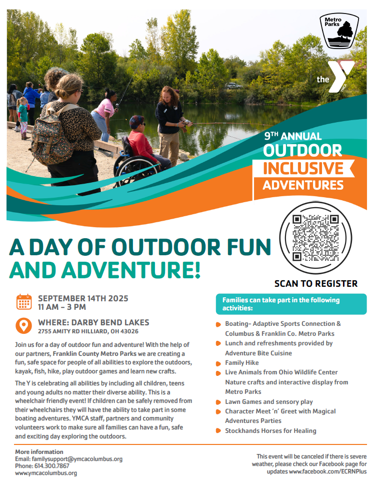 Join us for a day of outdoor fun and adventure! With the help of our partners, Franklin County Metro Parks we are creating a fun, safe space for people of all abilities to explore the outdoors, kayak, fish, hike, play outdoor games and learn new crafts.